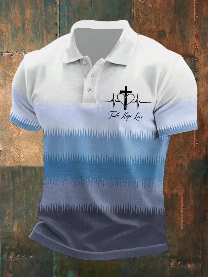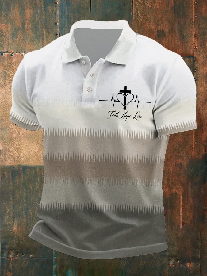 Buy 3 Get 10% OffMen's Faith Print Lapel Button Polo Shirt – lolonb