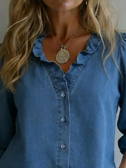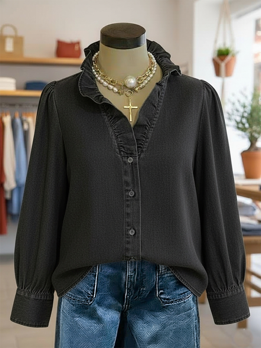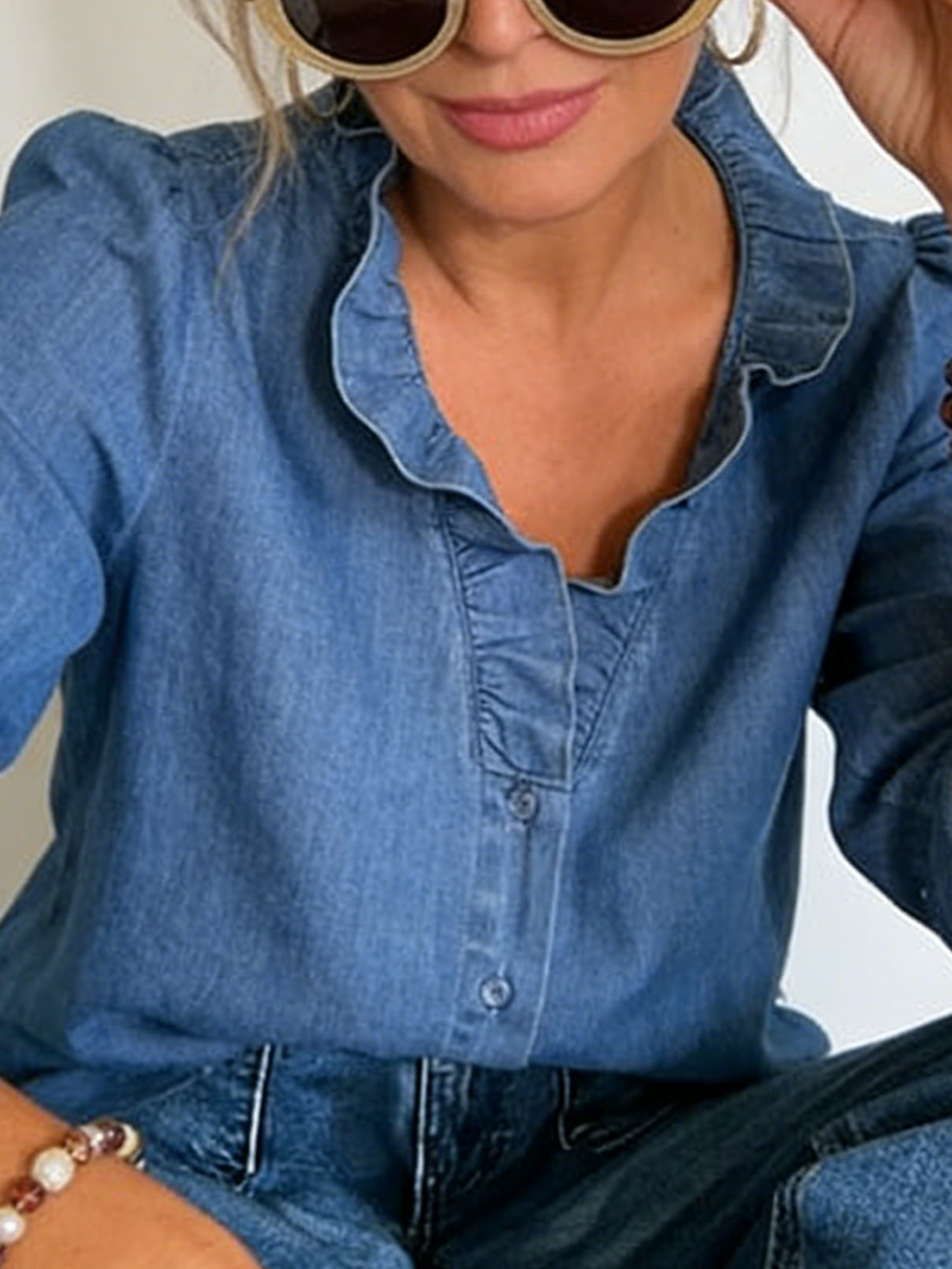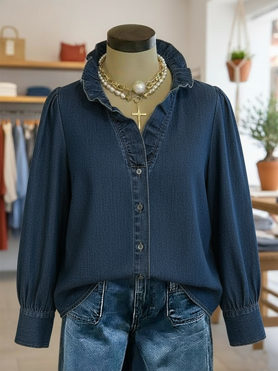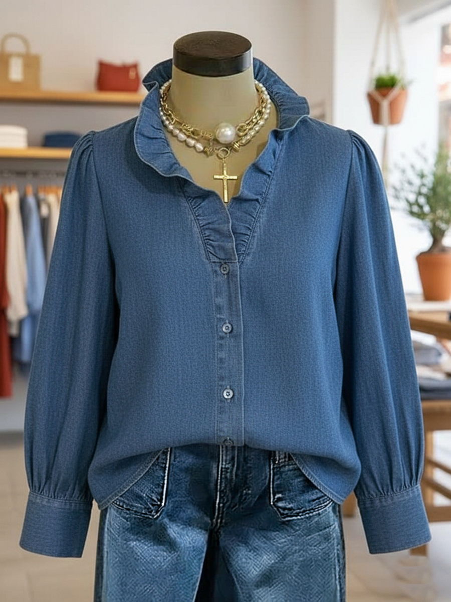 Romantic Ruffled Collar Denim Shirt – lolonb
