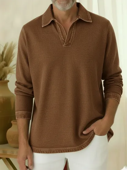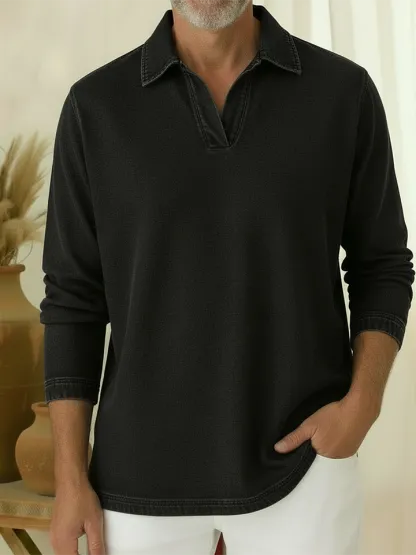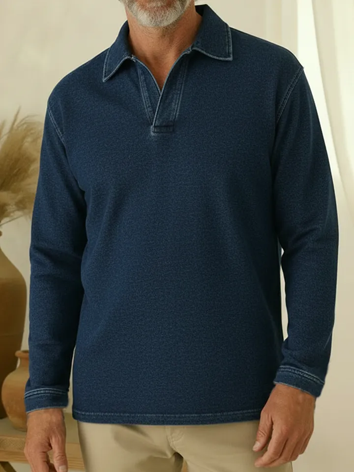 Unisex Casual Polo-neck Denim Sweatshirt