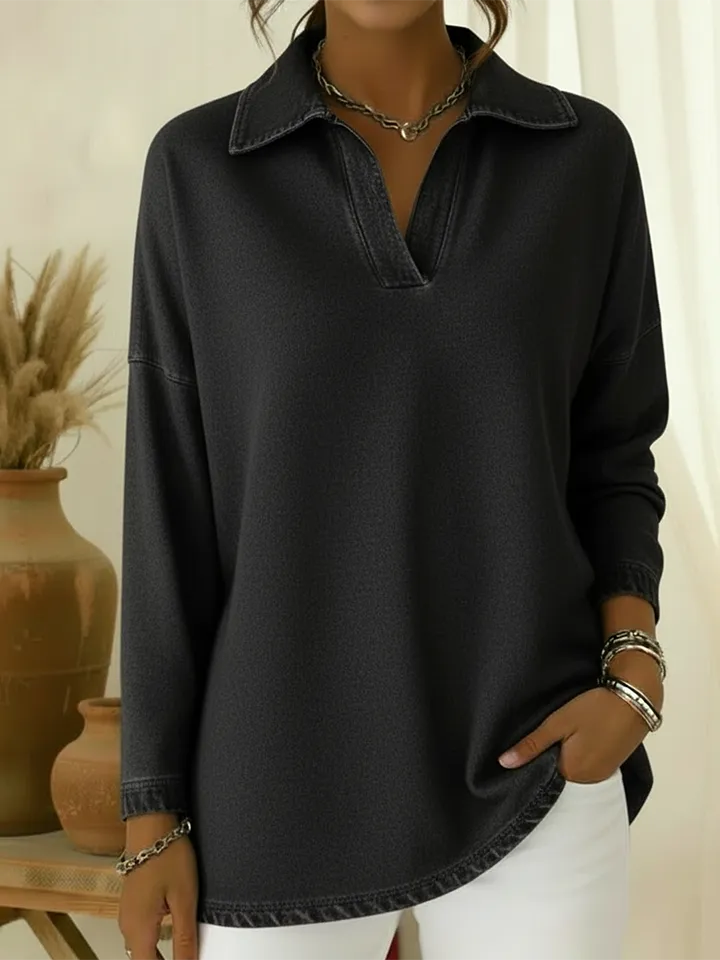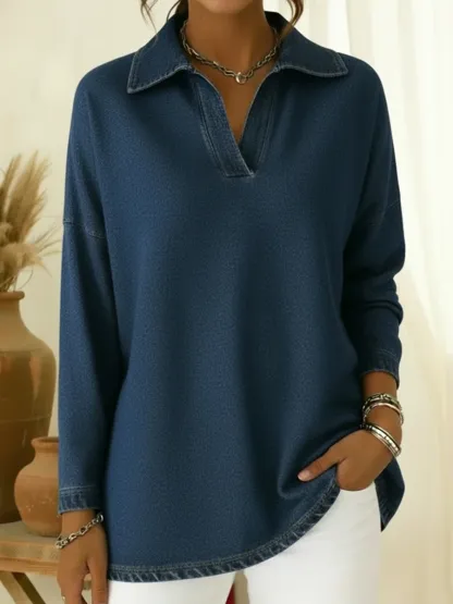 Unisex Casual Polo-neck Denim Sweatshirt – lolonb