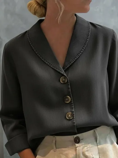 Vintage Shawl Collar Button-up Denim Cotton Top – lolonb