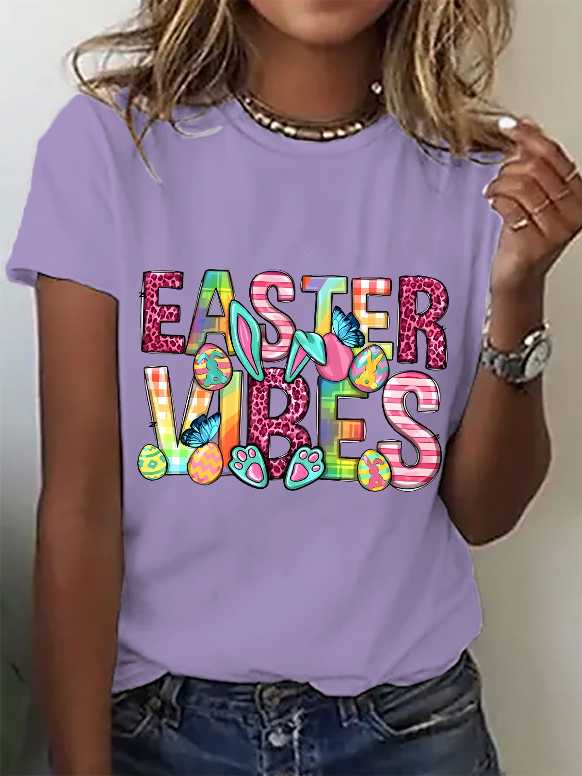 Women's Easter Vibes Bunny Funny Casual Cotton Short SleeveT-Shirt