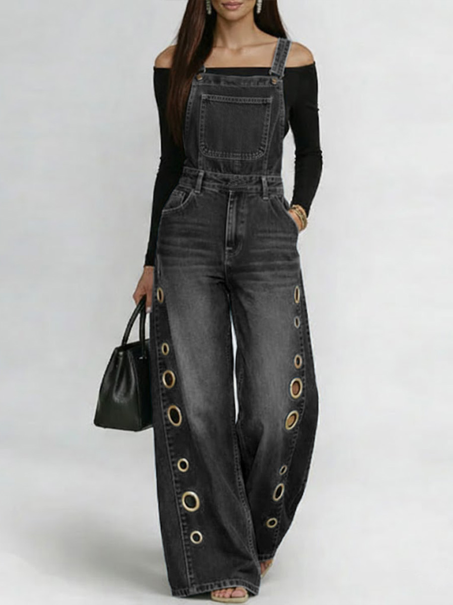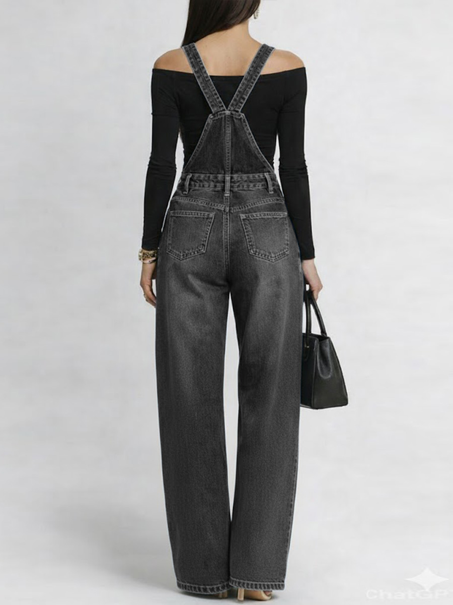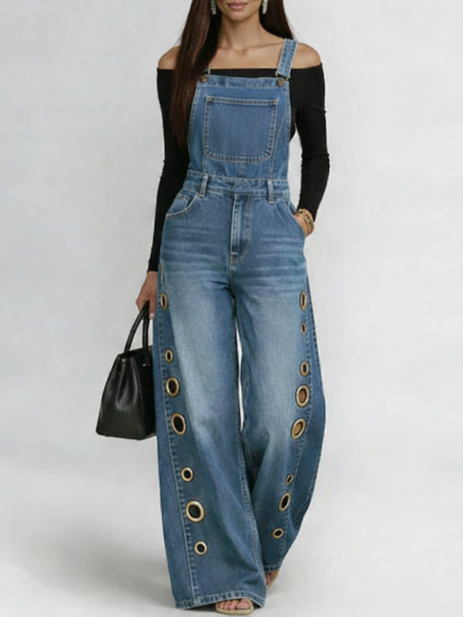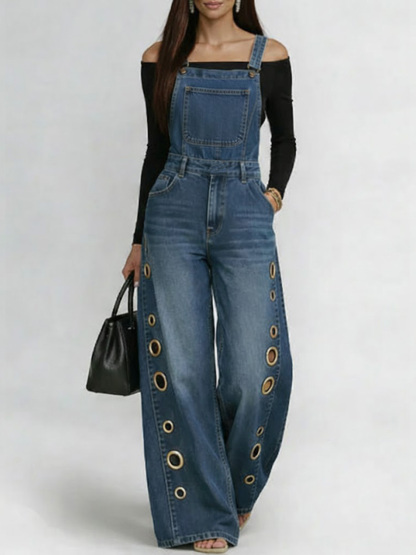 Women's Casual Loose Denim Overalls Wide-leg Jumpsuit – lolonb