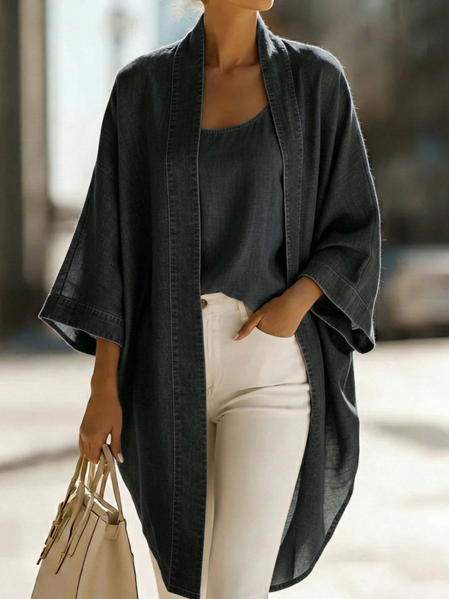 Effortlessly elevate your everyday wardrobe with this casual denim two-piece set, designed for women who love comfort with a touch of timeless style.