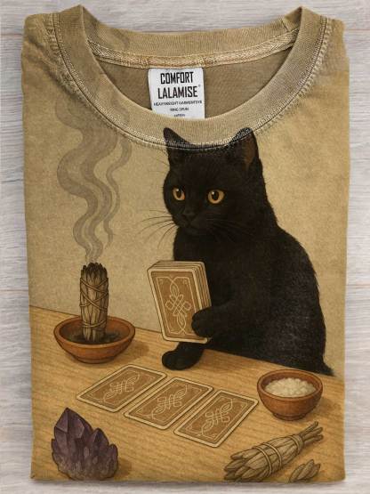 Fortune Telling Black Cat Art Print Casual Cotton Short Sleeve T-shirt – lolonb