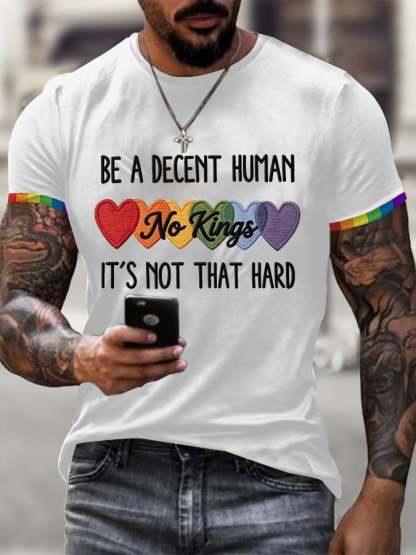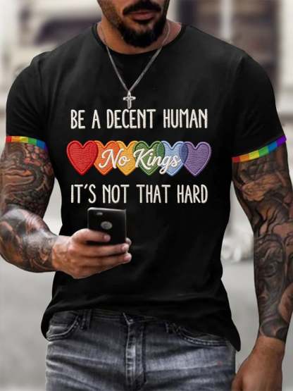 Men's Be A Decent Human It's Not That Hard No Kings Printed Casual T-shirt – lolonb