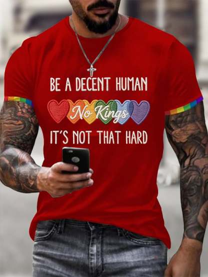 Men's Be A Decent Human It's Not That Hard No Kings Printed Casual T-shirt