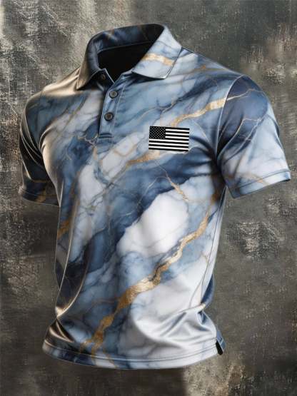 Men's Retro Patriotic Color-Block Short-Sleeve Polo Shirt