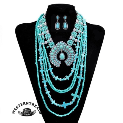 Very popular ✨Turquoise Flower Pendant Alloy Necklace