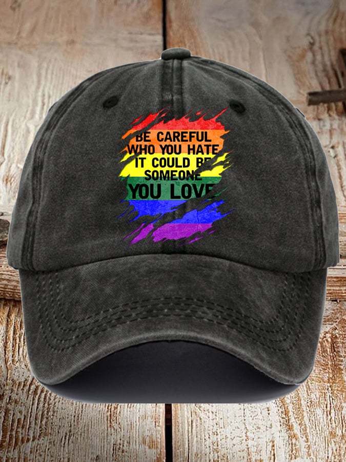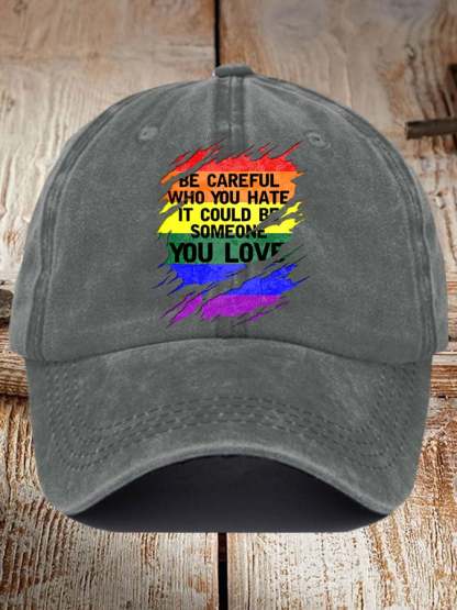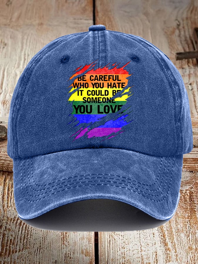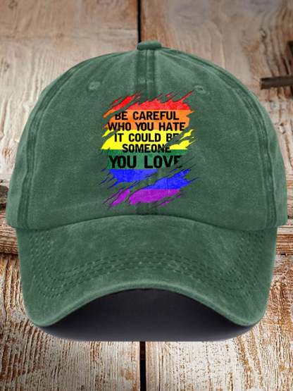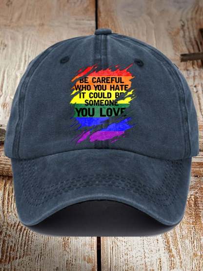 Unisex Casual Rainbow Be Careful Who You Hate, It Could Be Someone You Love Washed Cotton Hat – lolonb