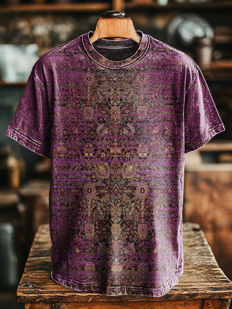 Unisex Vintage Ethnic Floral Art Print Casual Short Sleeve T-shirt