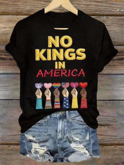 V-Neck Retro No Kings III 50 State Nationwide Protest March 28th Print T-Shirt