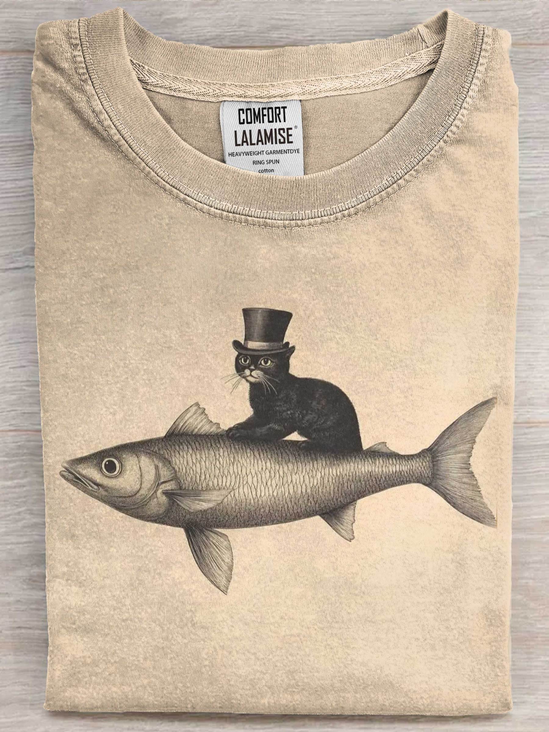 Vintage Fish Art Print Casual Short Sleeve T-shirt