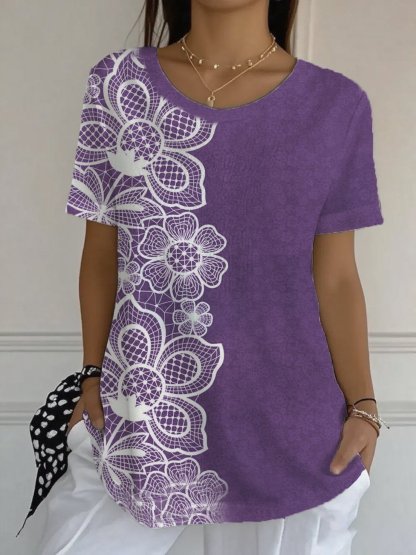 Women's Alzheimer's disease Purple Printed Short-Sleeved T-Shirt