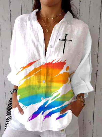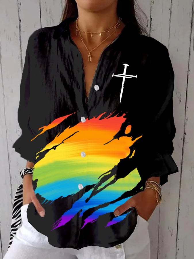 Women's Gay Month Rainbow Print Casual Lapel Shirt – lolonb