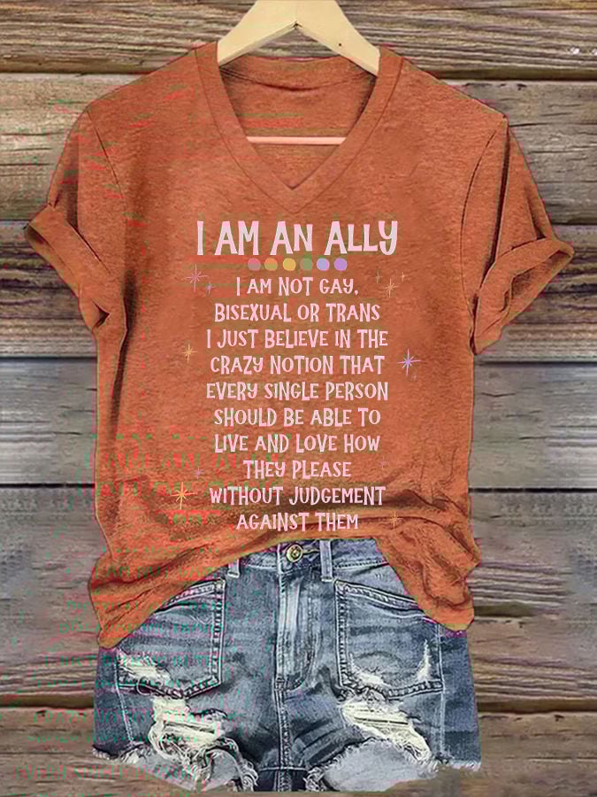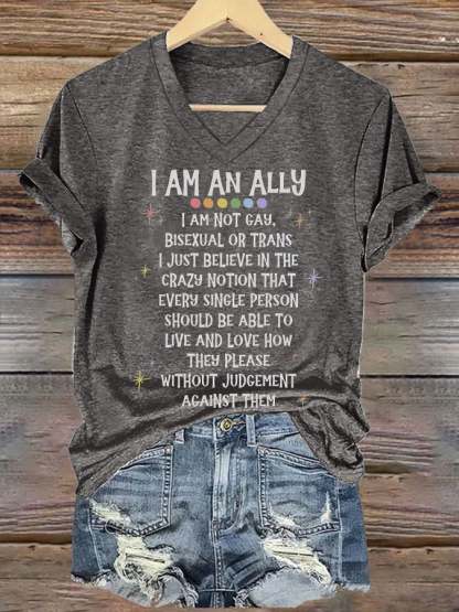 Women'S I Am An Ally Print Crew Neck T-Shirt – lolonb