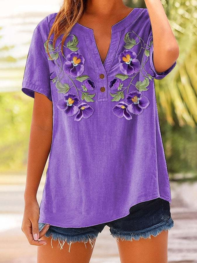 Buy 3 Get 10% OffWomen's Pansy Embroidered Print Shirt – lolonb