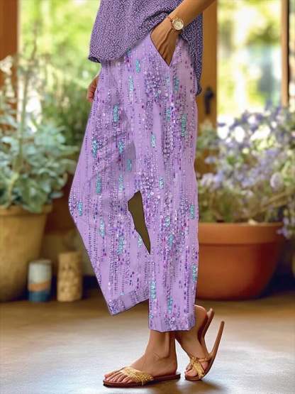 Buy 3 Get 10% OffWomen's Purple Art Design Printed Loose Pocket Patchwork Casual Pants – lolonb