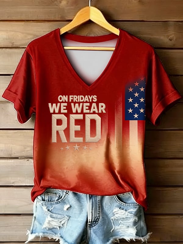 Women's Red Friday Casual Patriotic V-neck T-shirt