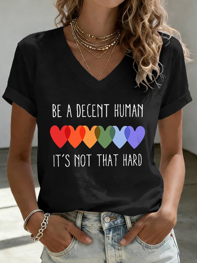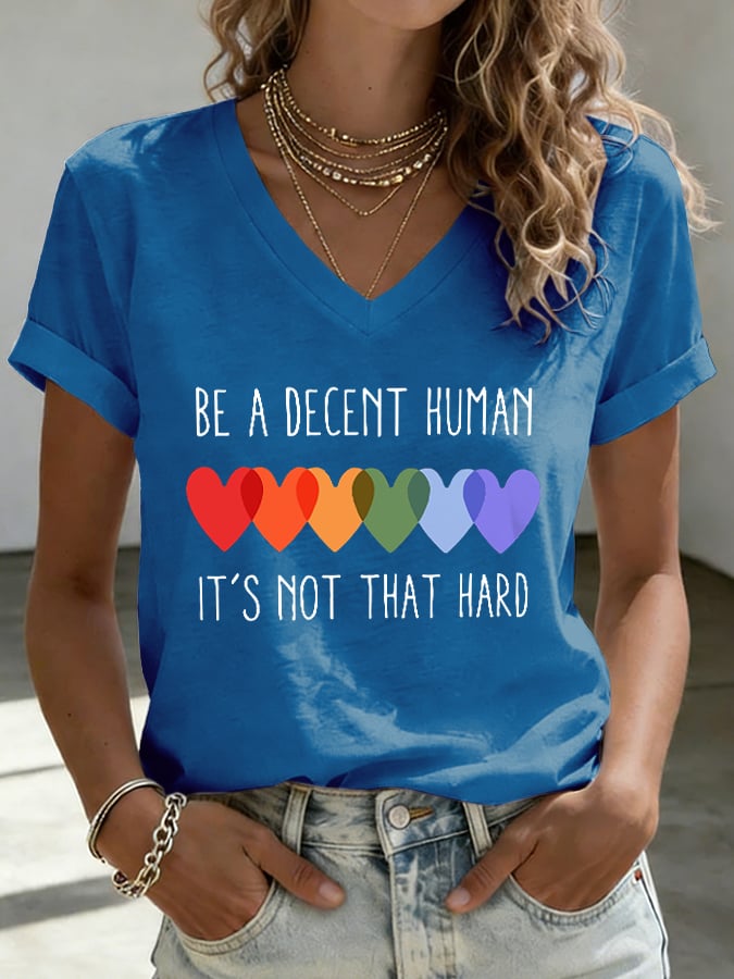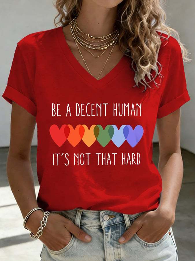 Women's Retro Be A Decent Human It's Not That Hard Print V-Neck T-Shirt – lolonb