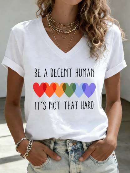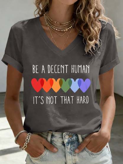 Women's Retro Be A Decent Human It's Not That Hard Print V-Neck T-Shirt