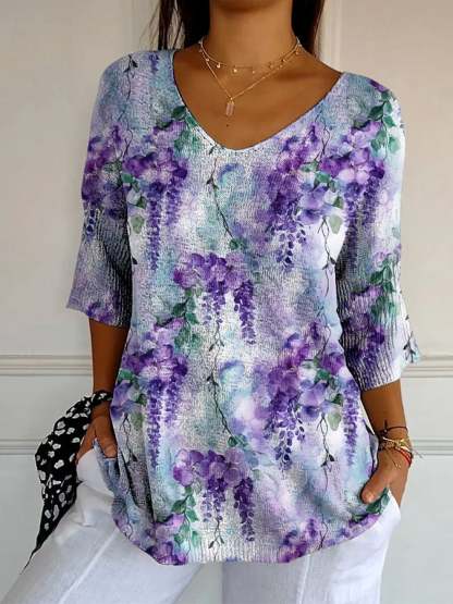 Women's Retro Purple Floral Print Shirt