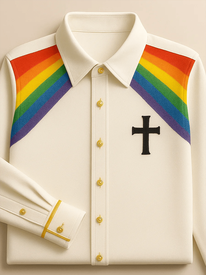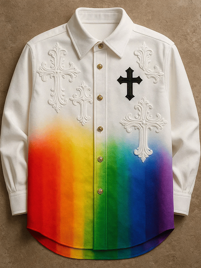 Men's Vintage Rainbow Art Print Long Sleeve Shirt