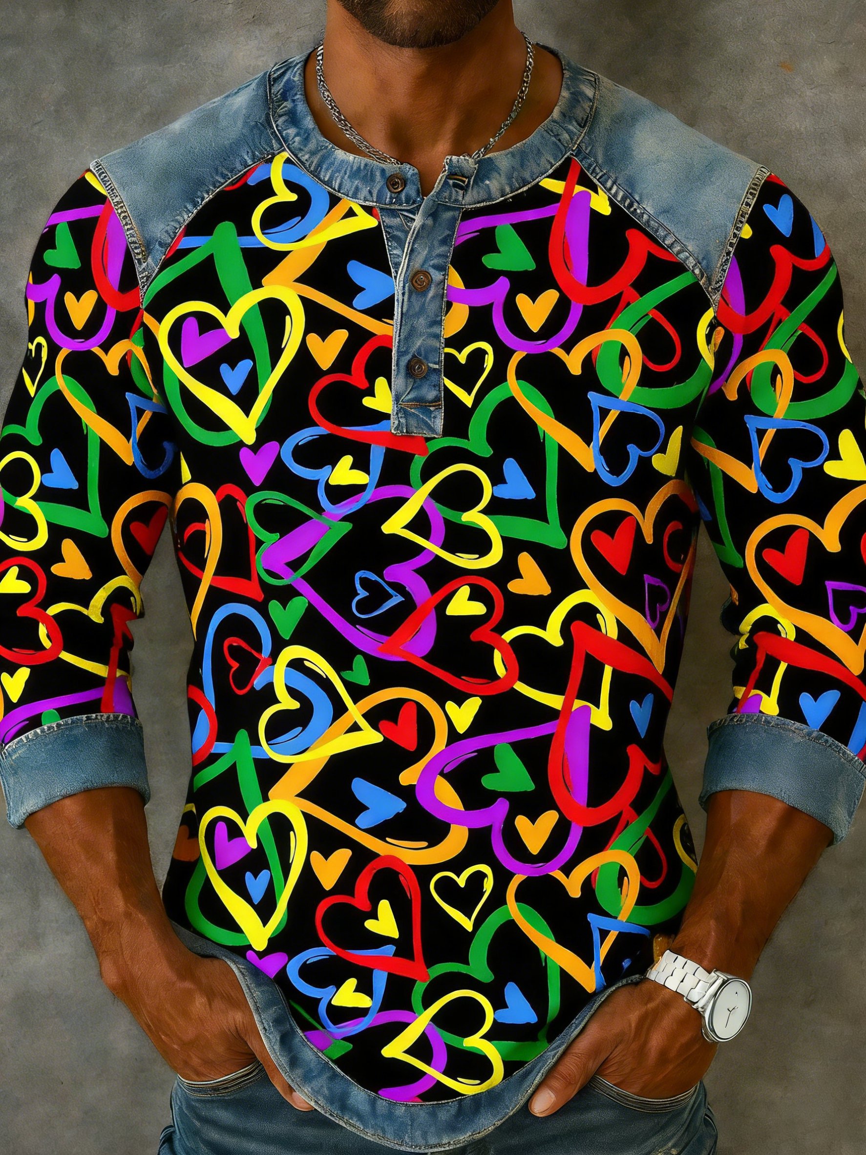 Men's Retro LGBT Print Casual Long-Sleeved Top