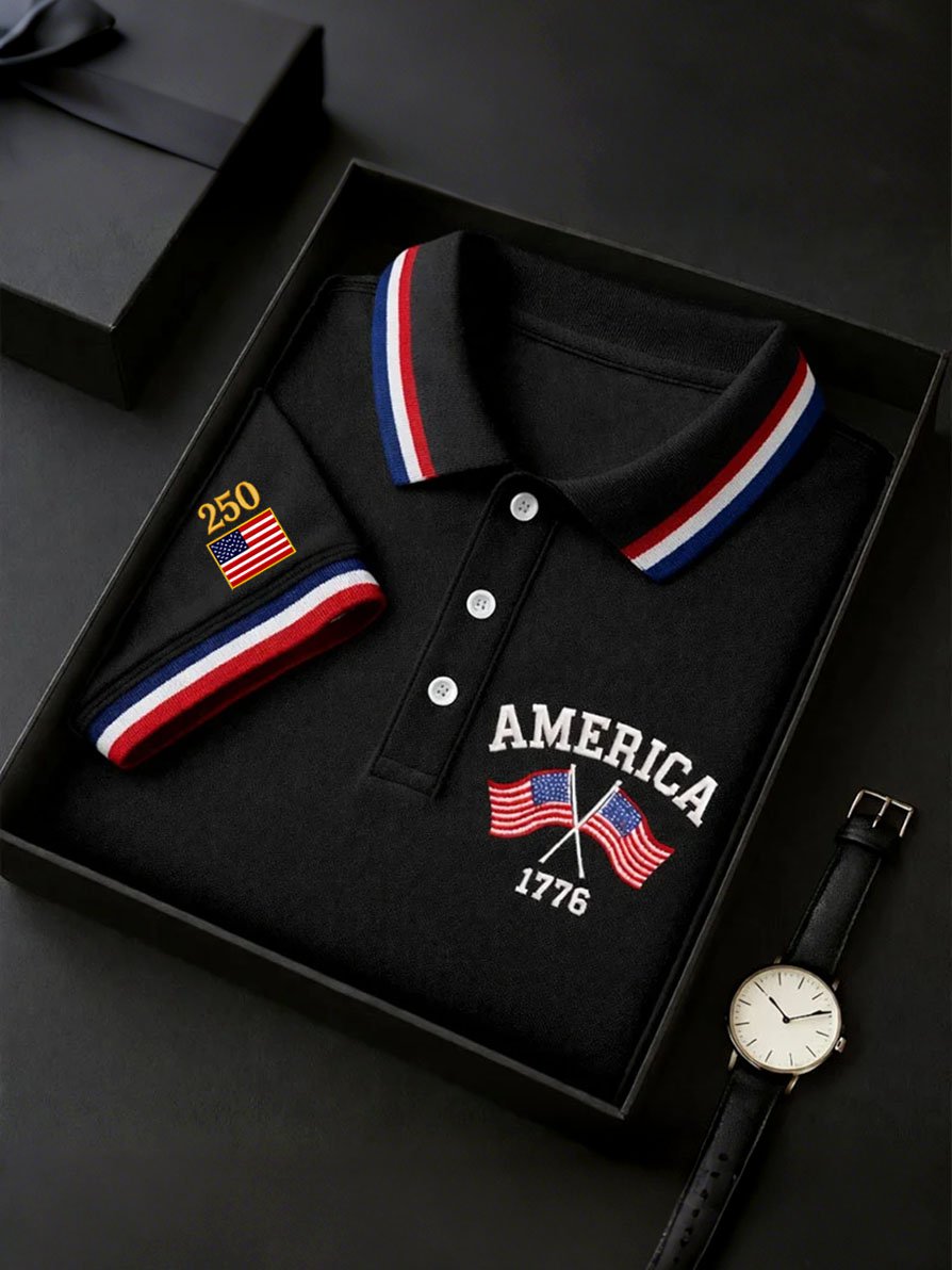 Men's American Independence 250th Anniversary Commemorative Casual Short-Sleeved Polo Shirt