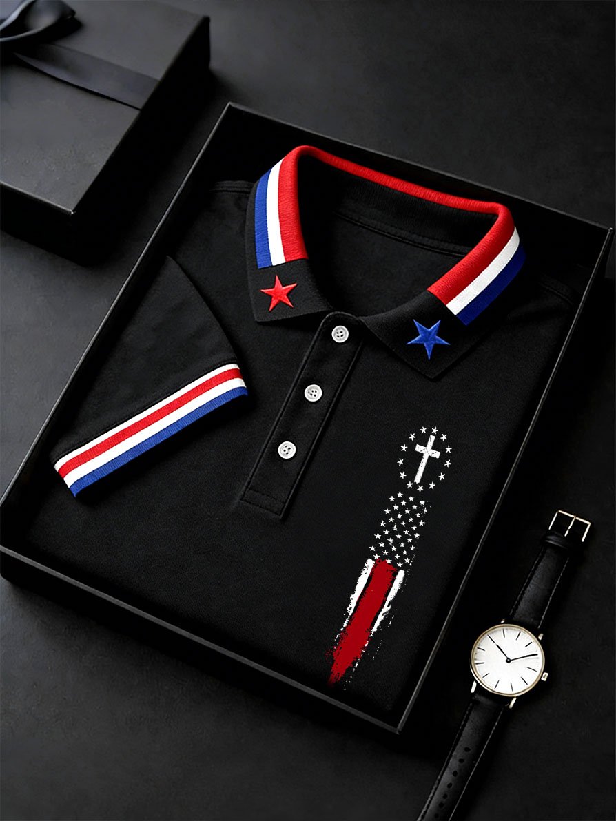 Men's Retro 250th Anniversary USA Independence Day Cross Print Polo Shirt