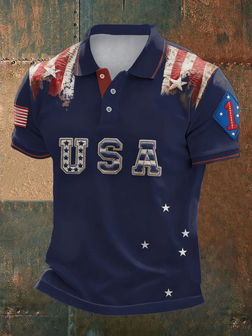 Men's Business Casual Independence Day Button Short Sleeve Polo Shirt