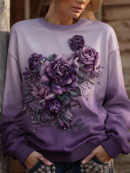 Alzheimer's Awareness Purple Floral Print Casual Sweatshirt – lolonb