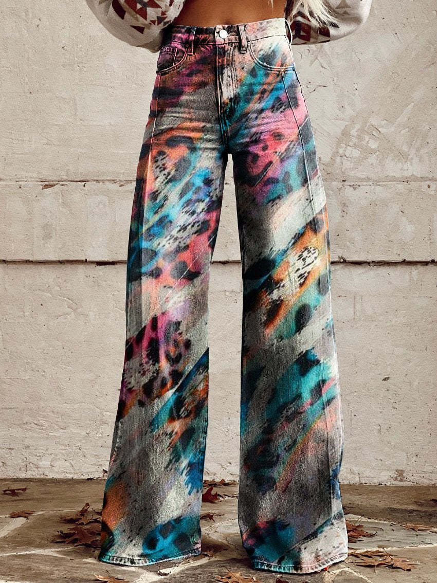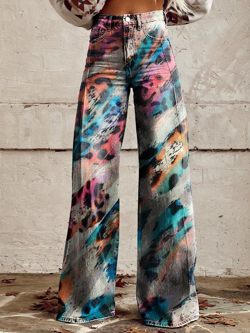 Colorful Leopard Print Women's Print Casual Wide Leg Pants