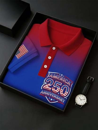 Men'S Casual Polo Shirt With American 250th Anniversary Print