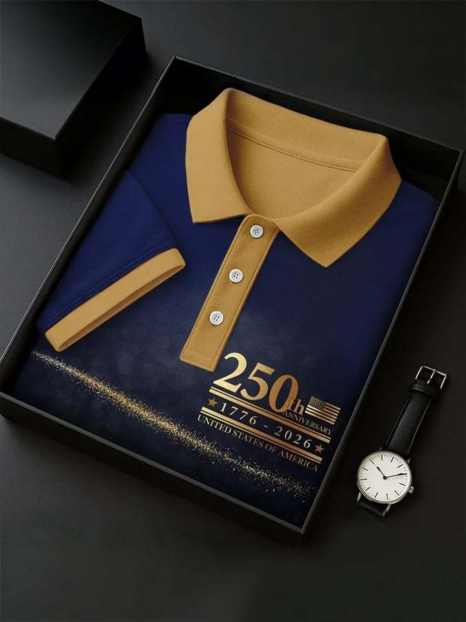 Men'S Casual Polo Shirt With American 250th Anniversary Print