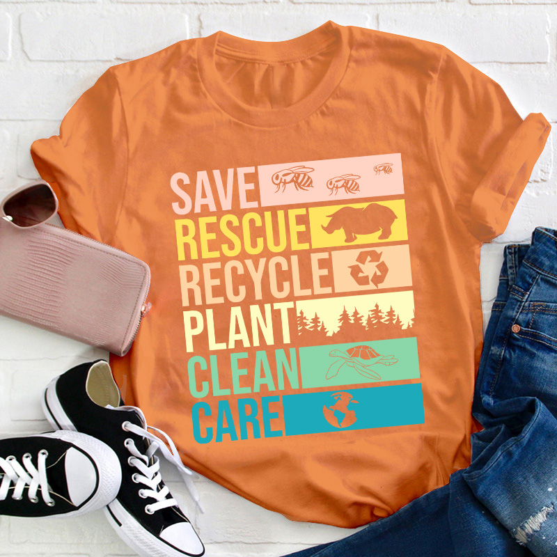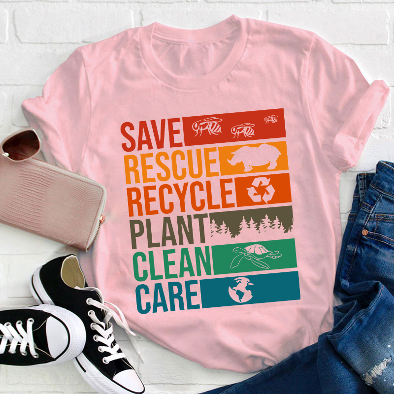 Save Rescue Recycle Plant Clean Care Teacher T-Shirt