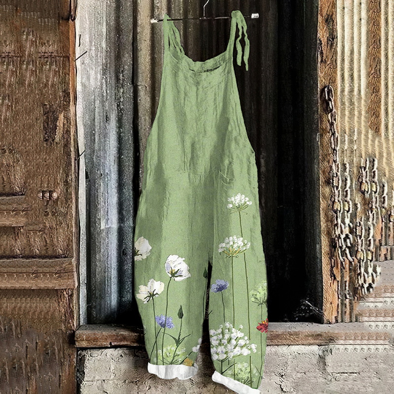 Vintage Floral Art Linen Blend Loose Casual Jumpsuit – lolonb