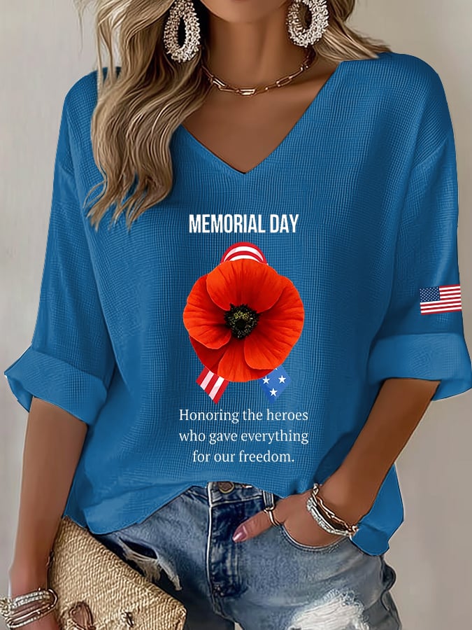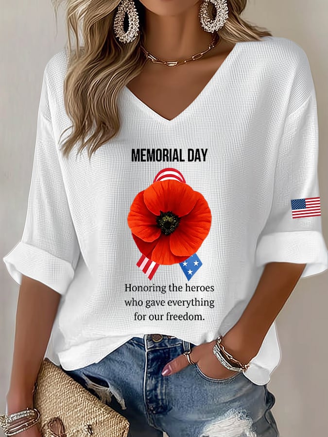 Women's Casual Memorial Day Printed Waffle Top – lolonb
