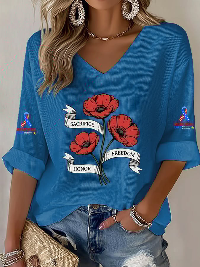 Women's Casual Memorial Day Printed Waffle Top – lolonb