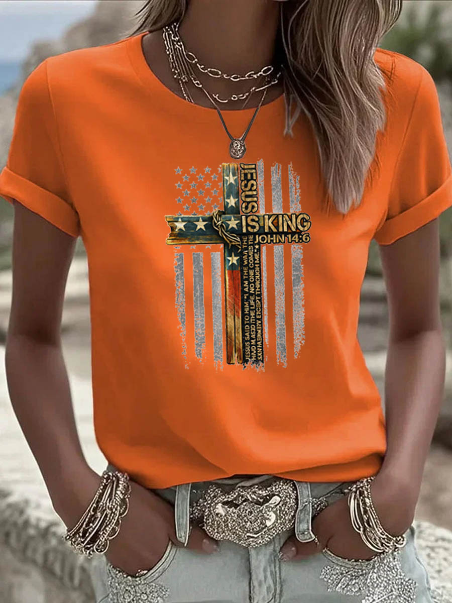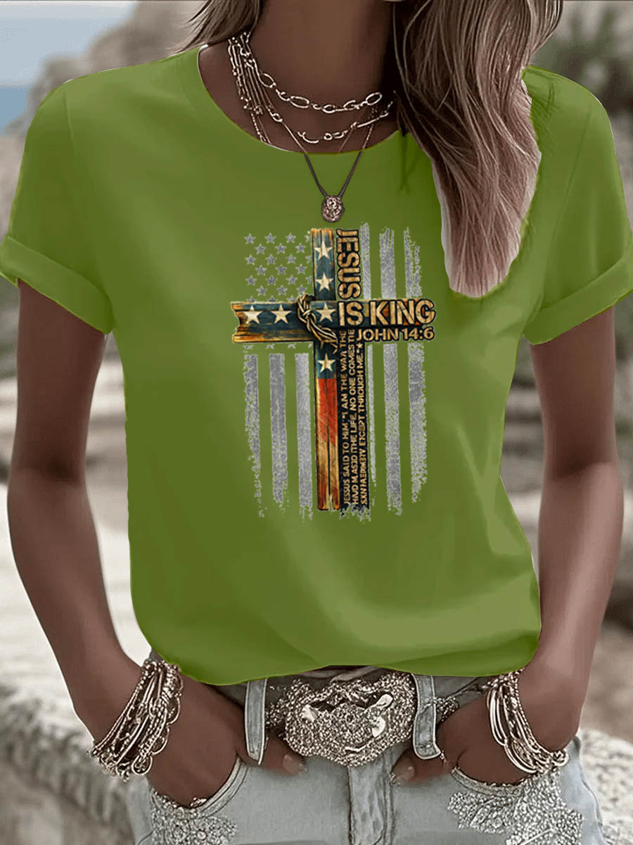 Women's Jesus Is King Pattern Round-Neck 100% Cotton 180g T-Shirt