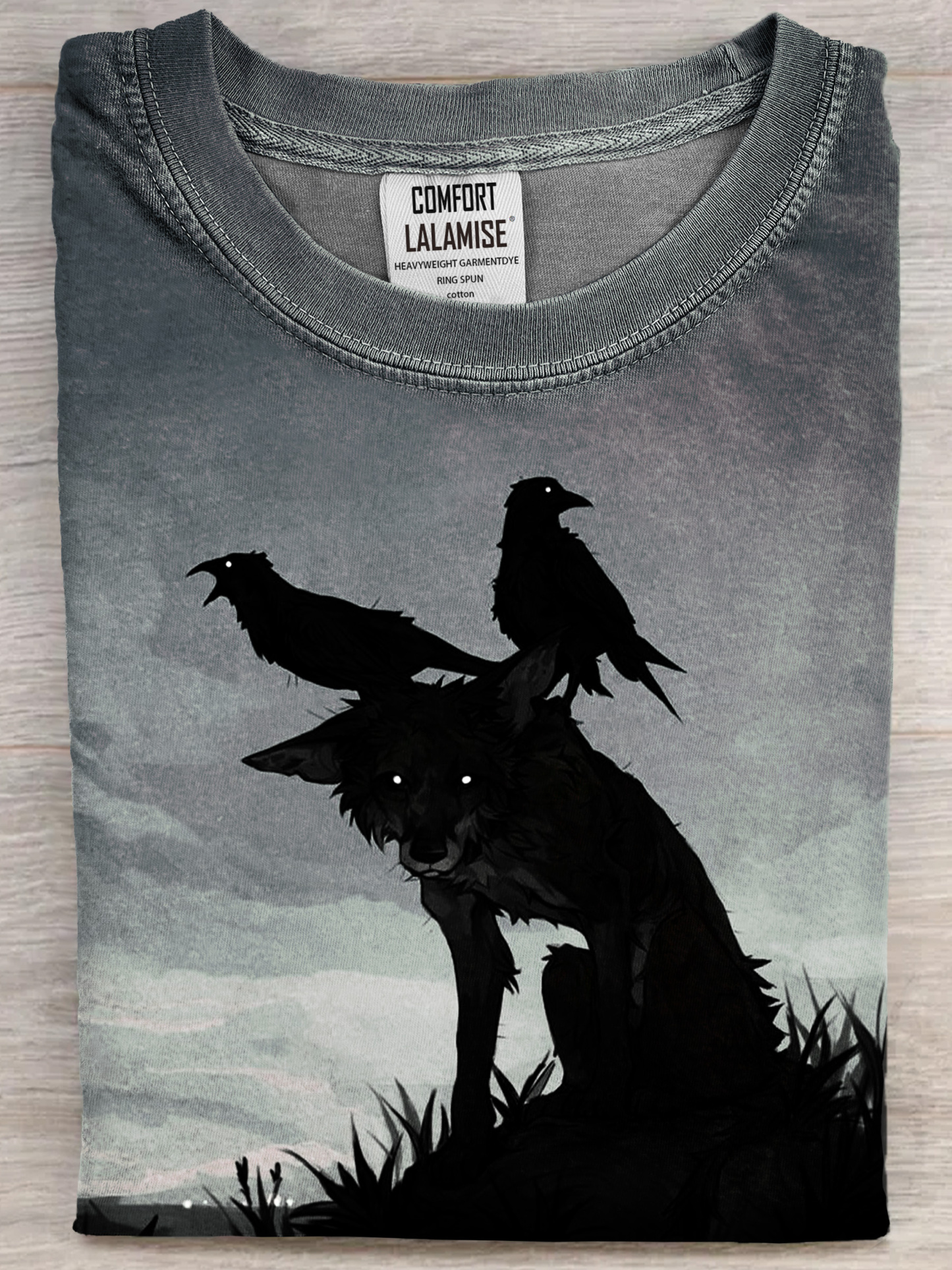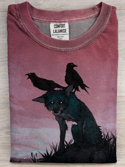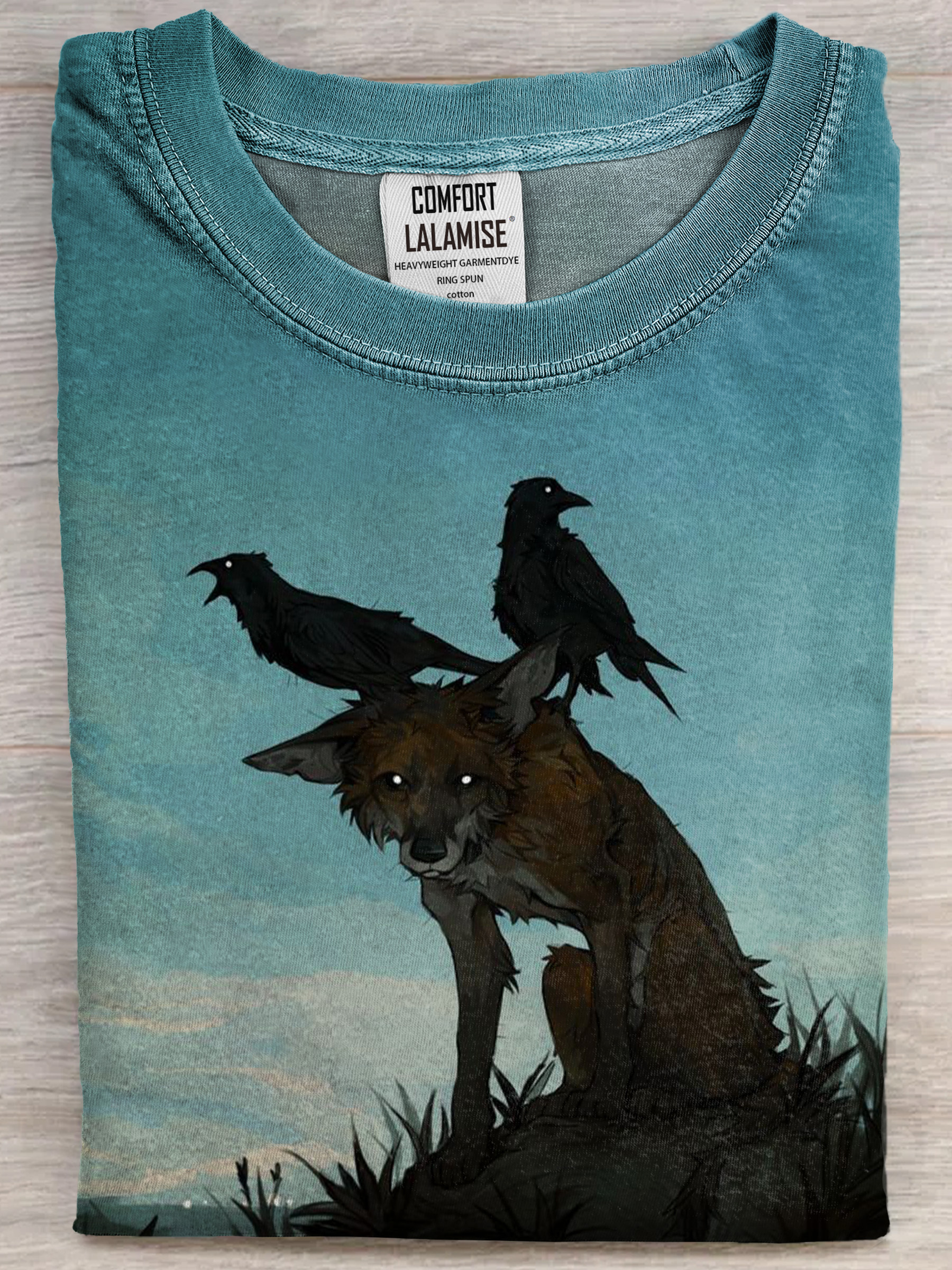 Funny Bird And Wolf Art Print Cotton Casual Short Sleeve T-shirt