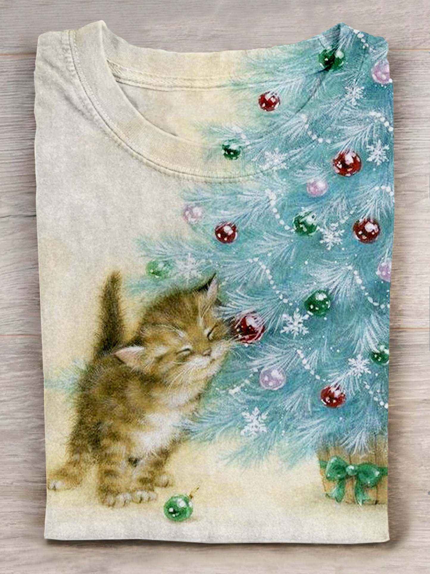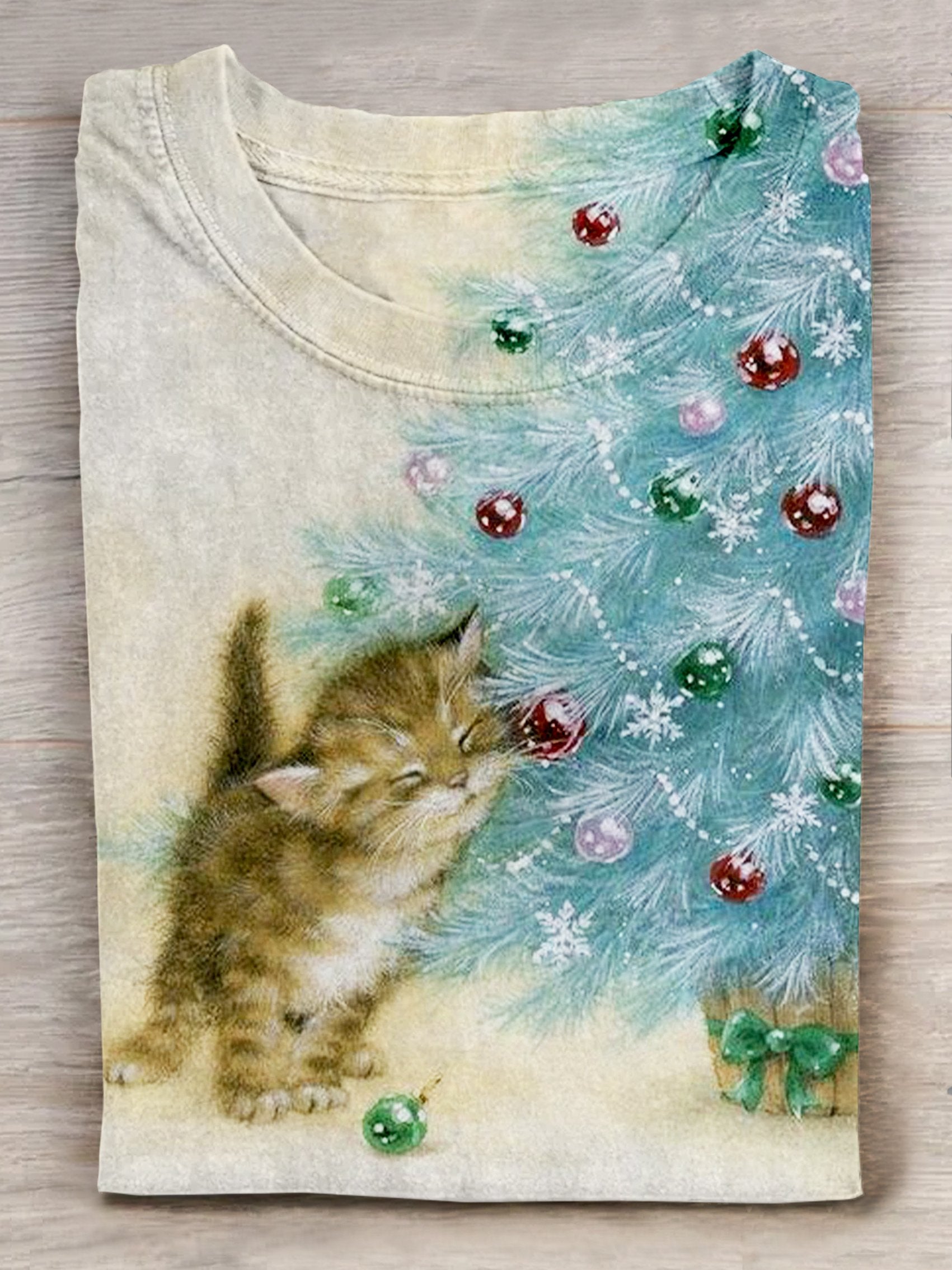 Christmas Cat Art Print Casual Short Sleeve T-shirt