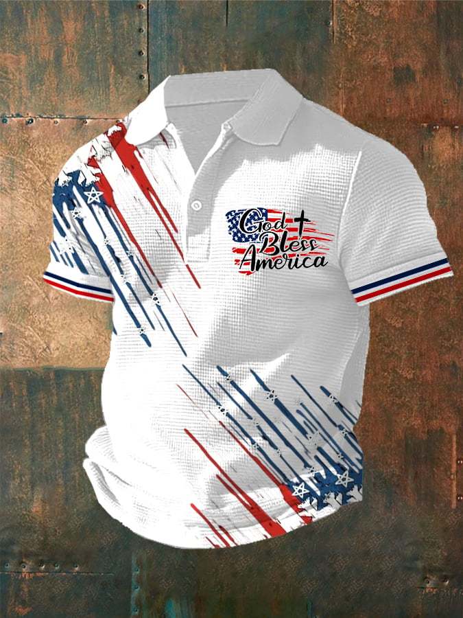 Men's Independence Day Waffle Fabric Short Sleeve Polo Shirt