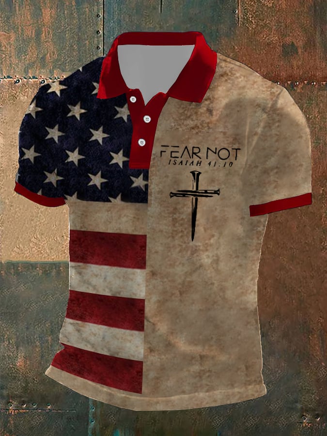 Men's Vintage Flag Fear Not Printed POLO Shirt