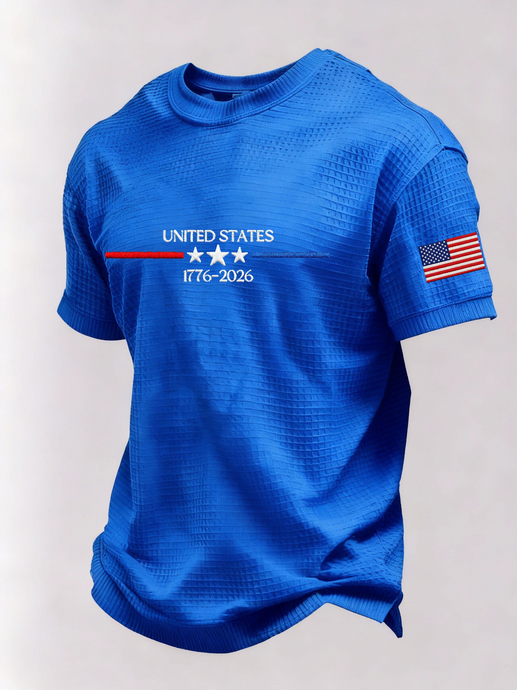 Men’s USA 250th Anniversary Embroidered Print Short Sleeve Waffle T-Shirt