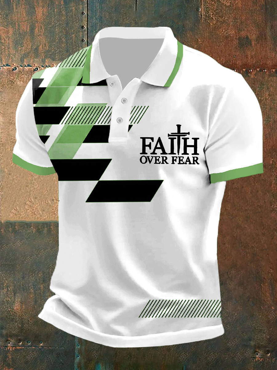 Men's Faith Over Fear Cross Faith Geometric Print Casual Polo – lolonb