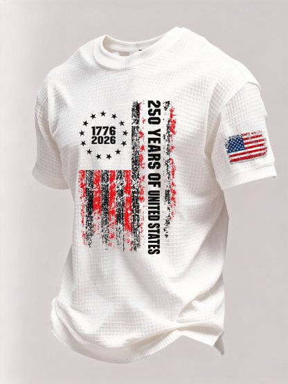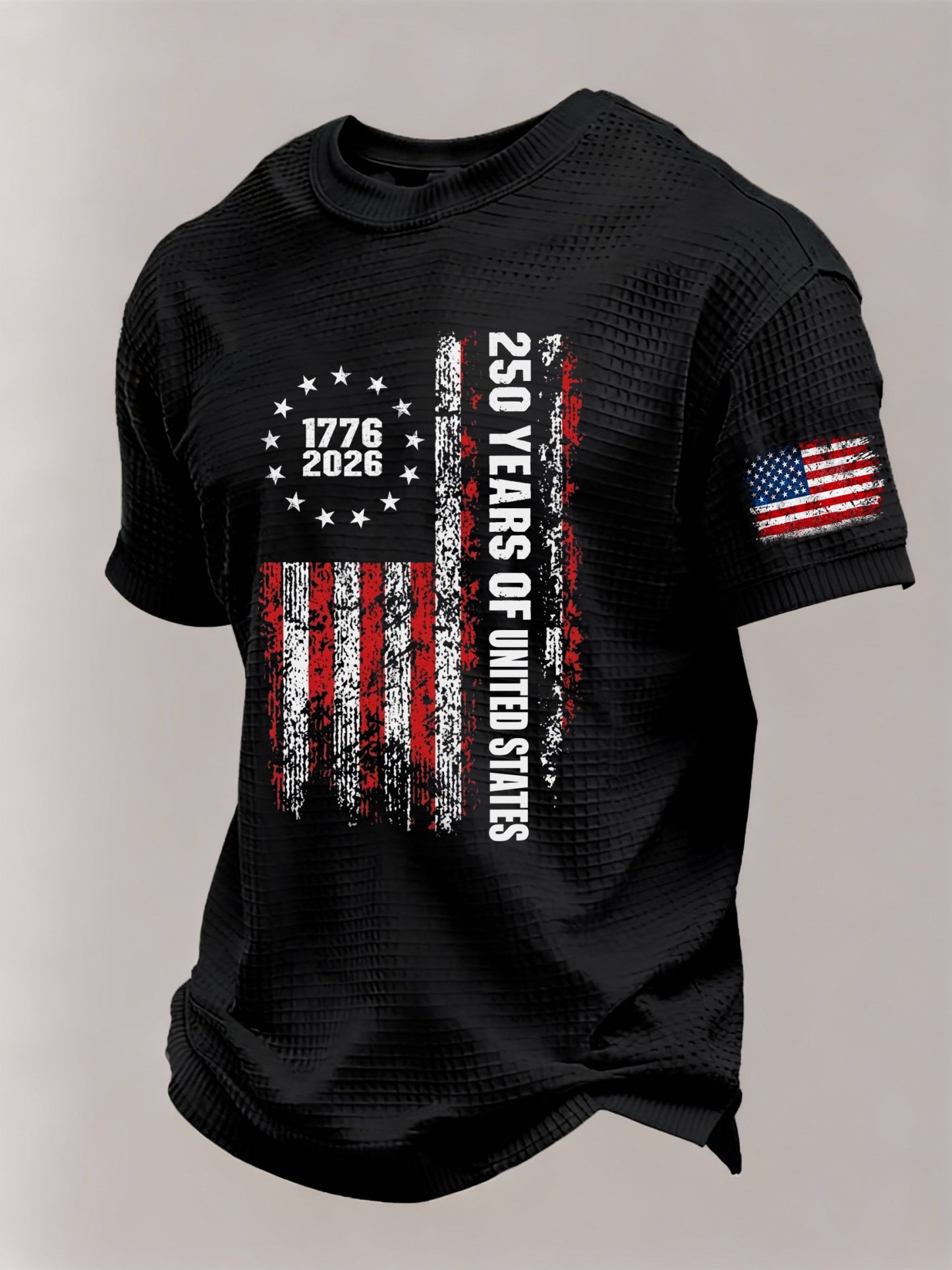 Men’s USA 250th Anniversary Embroidered Print Short Sleeve Waffle T-Shirt
