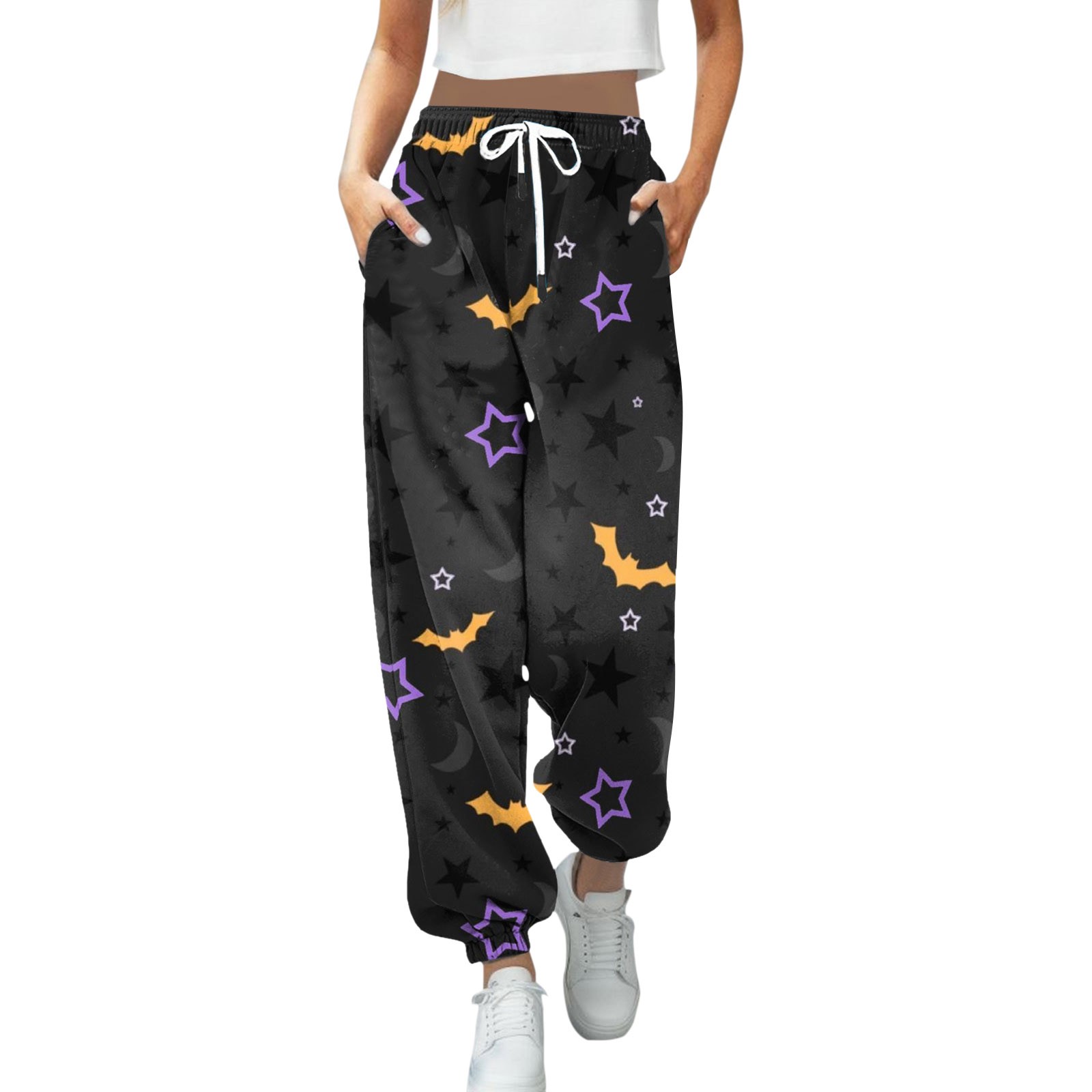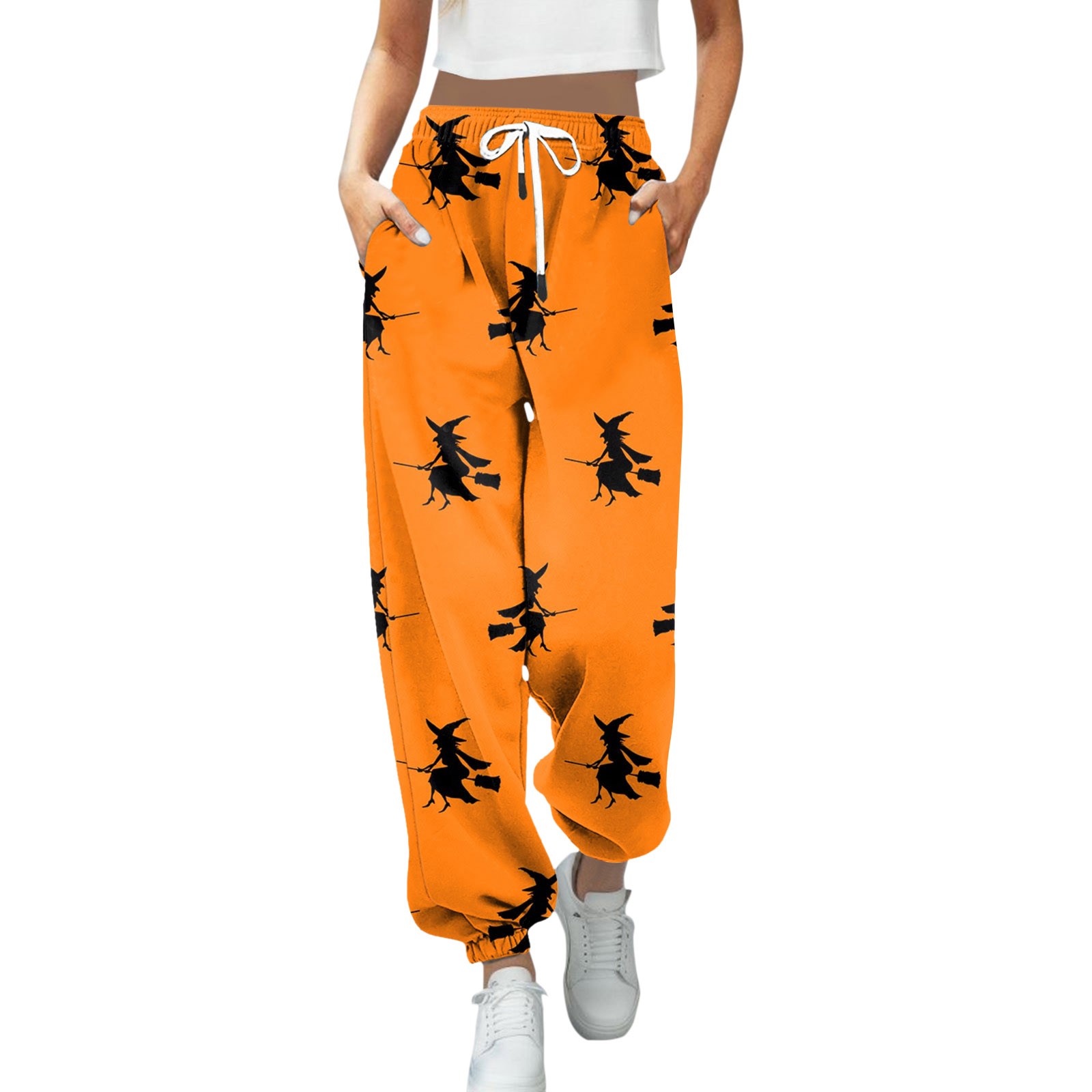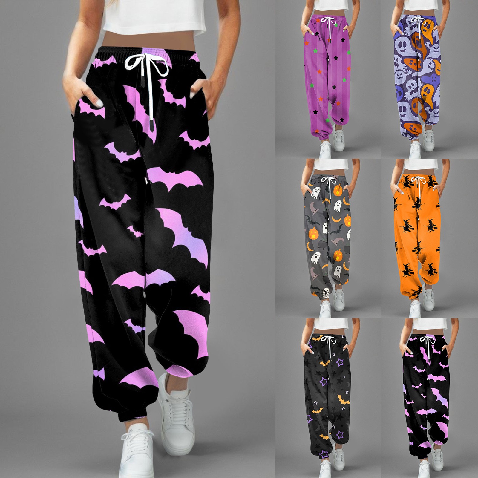 Halloween European And American New Casual Fashion 3D Printing Women's Leg Pants Drawstring High Waist Casual Pants halloween