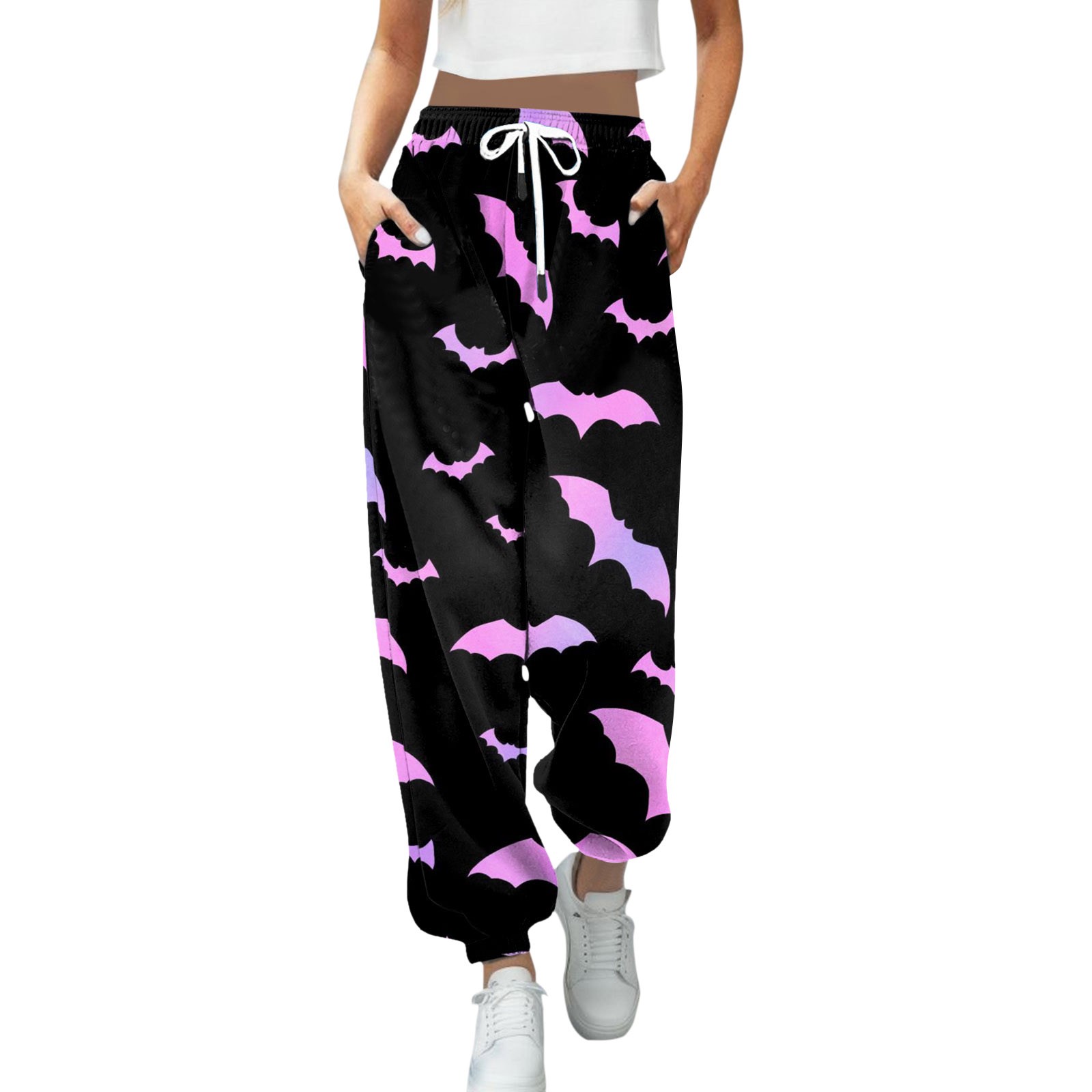 Pink Bat Print Halloween Loose Casual Oversized Trousers