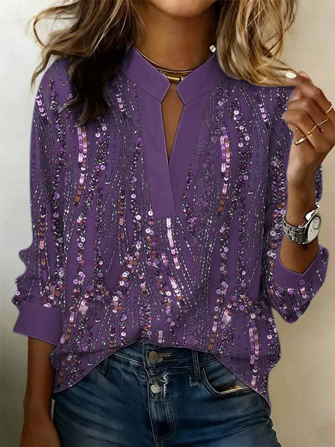 Women's Retro Purple Floral Print Elegant Shirt – lolonb
